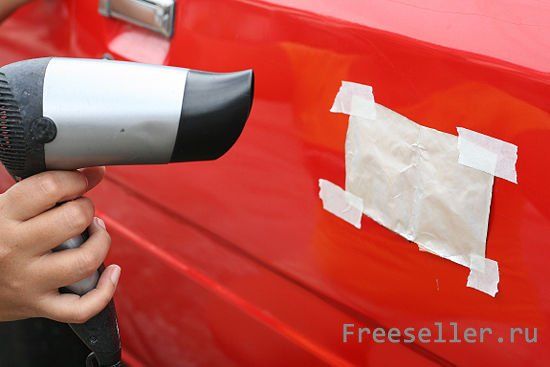 Для прогрева области вмятины держите фен на 15 см от поверхности, чтобы не повредить краску. Прогревать нужно при средних настройках около минуты, чтобы при прикосновении чувствовалось тепло.
