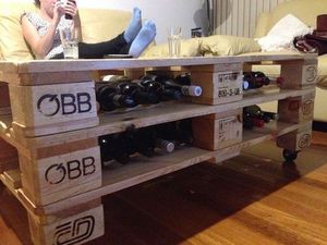 Стол готов! Сверху кладется прочное стекло. Углубления можно занять книгами, журналами, красиво разложить бутылки с вином.
