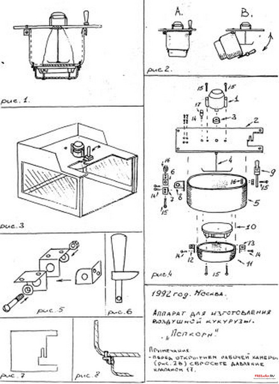 Данный аппарат рассчитан на изготовление в домашних условиях и предназначен для производства воздушной кукурузы отдельными порциями.