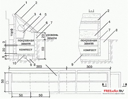 Готовый компост, как уже было сказано, укладывается в гряды или помещается в ящики или на стеллажи и слегка утрамбовывается. Нормально уложенный и утрамбованный компост при нажатии на него рукой слегка пружинит. Высота слоя уплотненного компоста должна составлять 25-30 см, что потребует расхода примерно 100 кг компоста на 1 м2.