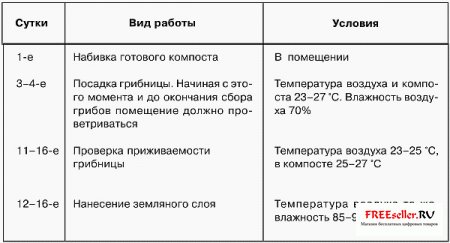 Агроприемы и сроки их проведения при выращивании шампиньонов