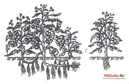 Рис. 2. Слева – растения с укорененными пасынками. Справа – обычный способ посадки.