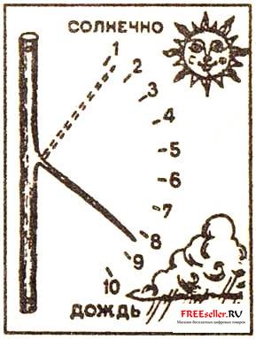Барометр вывесьте в тени, чтобы прямые лучи на него не попадали. Все готово. Теперь, выходя из дому, вы можете прогнозировать и солнечный день, и дождь в зависимости от положения единственной иглы молодой пихты...