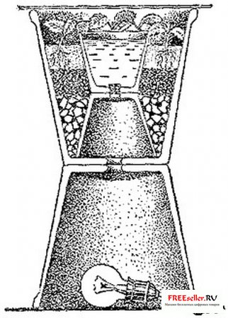 Снизу в футляр, под противень, проводят электрическую лампочку, которая и нагревает воду до нужной температуры; а тепло от воды передается почве, и влажный теплый воздух проходит к растениям через отверстия по бокам