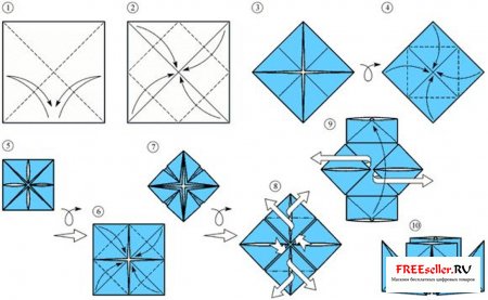 Технология изготовления оригами - парохода из бумаги.