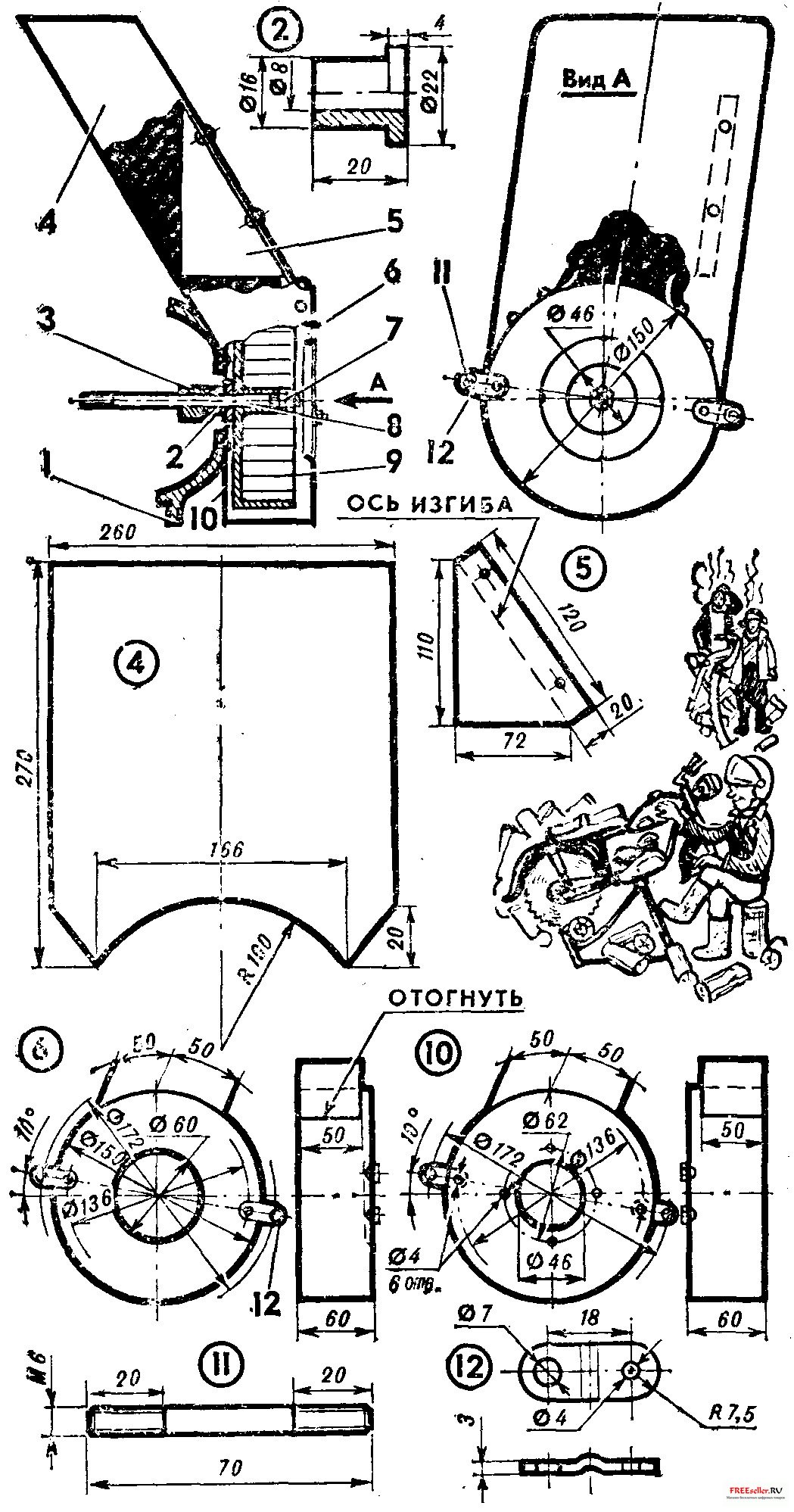 Результаты первых же испытаний превзошли все ожидания: бревно распиливалось в считанные секунды. Правда, двигатель сильно перегревался, потому пришлось позаботиться о принудительном охлаждении. Крыльчатку вентилятора использовал от автомобильного обогревателя, а на кожухи пошли обычные банки из-под краски.