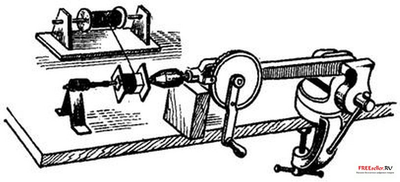 Рис. 3. Приспособление для намотки катушек на базе ручной дрели.