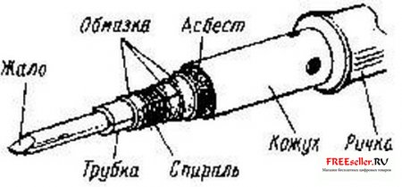 Нагревательный элемент паяльника - закрытого типа, т. е. защищен от контакта с кислородом воздуха; этим обеспечена долговечность паяльника. Основанием элемента служит трубка из жести или листовой латуни (в крайнем случае - меди) толщиной 0,2 мм, свернутая на оправке диаметром 1,5 мм. В качестве оправки подойдет хвостовик сверла. Длина трубки - 30...35 мм. Края должны сойтись встык, без нахлеста.