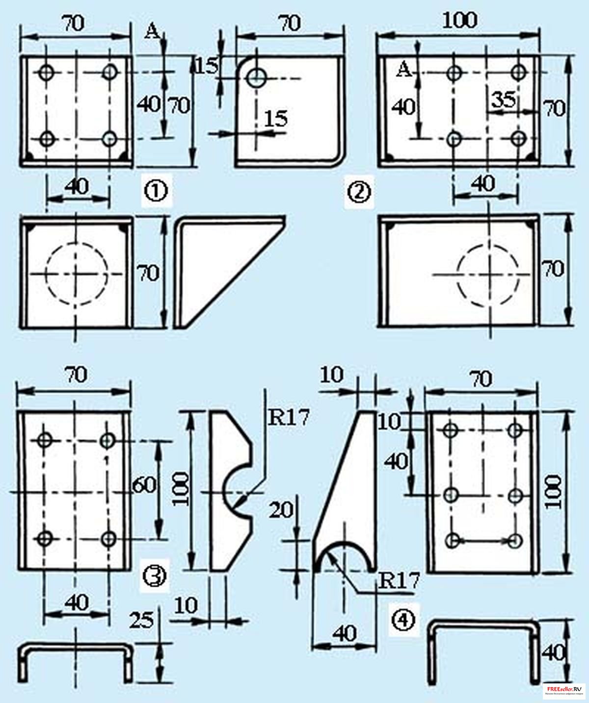 На рисунке показан один из способов крепления ножек на опоры. Эти места сделайте так, как сочтете удобным; возможно, вас больше устроят не ножки, а колеса для перемещения агрегата.