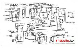 Прибор состоит из генератора звуковой частоты (DD2), тактового генератора (DD2), усилителя низкой частоты (DAЗ) с каскадом автоматической регулировки усиления и повышающим трансформатором, а также блока питания. Схема прибора показана на pис1. Генератор звуковой частоты (DD2) вырабатывает колебания, частота которых регулируется резистором R16. Форма колебаний на выходе генератора - меандр.