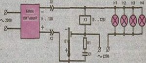 Рис. 3 Схема устройства включения обогревателя инкубатора (с искрогасителем)