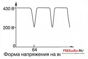 Работа с прибором сводится к следующему. Выводы питания подключаем с помощью “крокодилов” к выводам накала кинескопа работающего телевизора. Правильность подключения определяется по свечению светодиода D1. Через несколько секунд, необходимых для заряда конденсаторов, прибор готов к работе. Положительный вывод подключаем к модулятору (чаще всего это общий провод), отрицательный к восстанавливаемому катоду. Установив ток на минимум, замыкаем кнопку SW1. Результат регенерации проверяется по качеству изображения на экране после отключения прибора от катода. На рисунке 2 показана форма выходного сигнала. При необходимости увеличиваем ток резистором R7, включаем прибор и снова проверяем результат. Таким образом, постепенно увеличивая ток, можно наименее “травматично” воздействовать на катоды любых кинескопов.