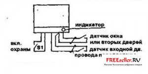 Схема подключения автосторожа (см. рис. 1) обеспечивает блокировку системы зажигания на все время охраны и не зависит от срабатывания датчиков. В охранном устройстве предусмотрена светодиодная индикация режима срабатывания сигнализации, что удобно при установке и эксплуатации автосторожа, так как эта светодиодная индикация служит индикатором нормальной работы всей системы.