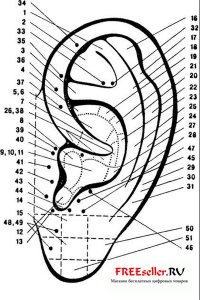 Рис.1. Точки проекции внутренних органов на ушной ранне