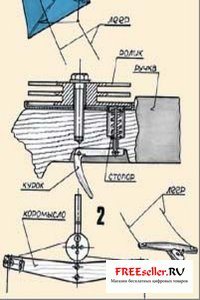 Как видите, своим змеем Фред управляет с помощью двойной связи. Сматывая леера одновременно с обеих бобин, он поднимает змея на предельную высоту, где ветер дует с постоянной скоростью. А уменьшая длину правого или левого леера, заставляет змей "проваливаться", отчего он круто падает вниз на правое или левое крыло. Похожее устройство использует филиппинец Эрнст Кинсли. Его конструкция представлена на рисунке 2. Здесь также используется двойная связь уздечек и лееров.