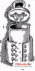 Рис.3. Туес из пластовой бересты: 1 - сколотень, 2 - обшивка; 3 - крышка.