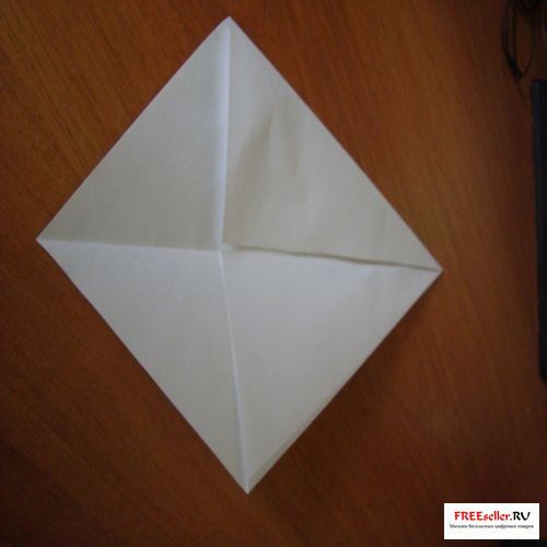 1) Возьмите лист бумаги в форме квадрата (например, салфетку) и расположите его ромбиков, перегните его по диагонали.