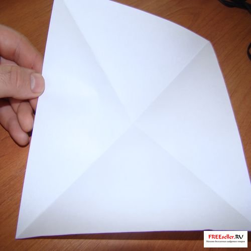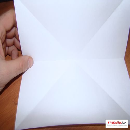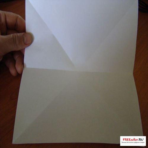 1) Возьмите лист бумаги a форме квадрат (например, салфетку) и перегните его диагоналям. переверните полученный лист бумаги.