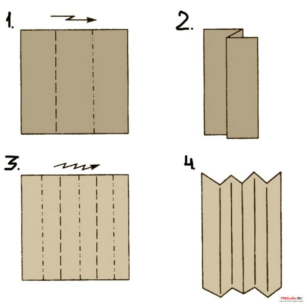 1) Складка молния представляет собой: Перегиб долиной и перегиб горой. Чем больше зигзагов на значке, тем больше складок нужно выполнить.