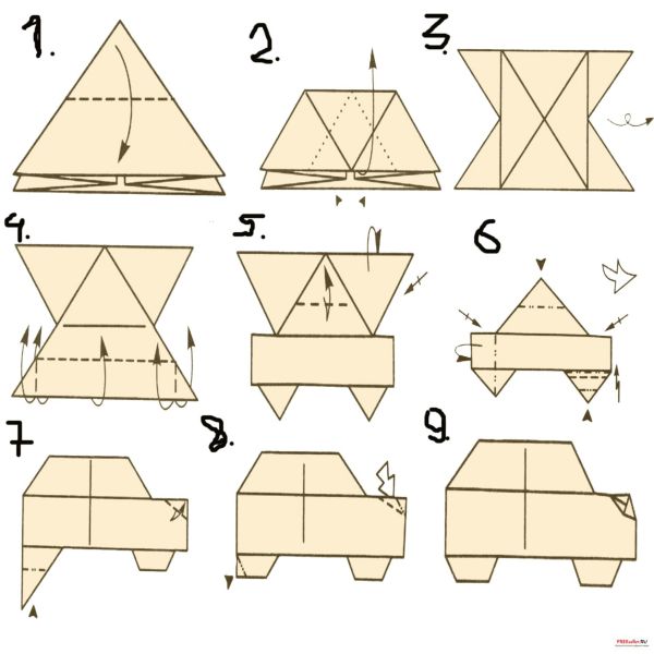 Схема сборки оригами: машинка
