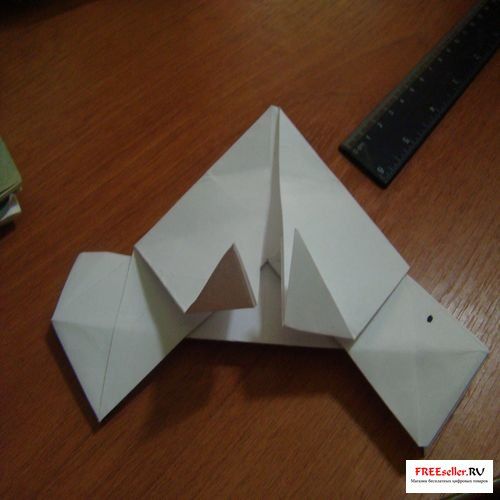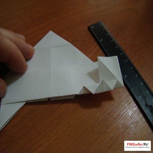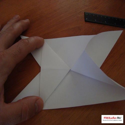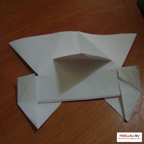 5) Перегните глухой угол как показано на рисунке или схеме, а на другой стороне отпустите верхние части и перегните.