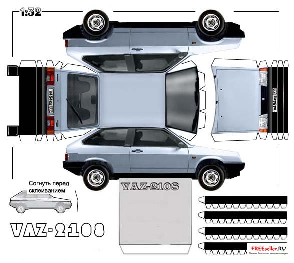 Бумажная модель автомобиля Ваз 2108 (восьмерка).