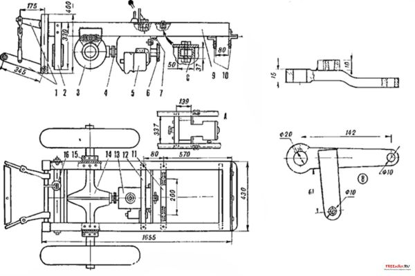Чертежи самодельного микро то трактора Амурчонок из деталей автомобилей ГАЗ 51, Москвич, Маз и других машин.