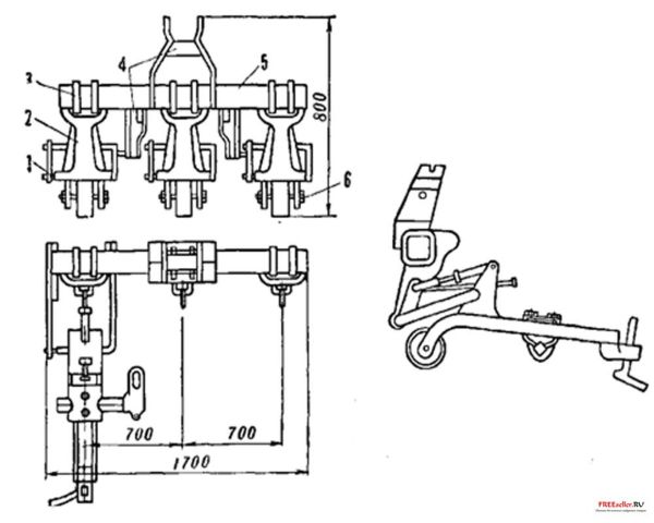 Культиватор дополненный рыхлителем, за основу был взят списанный свекловичный культиватор серийного производства. Укомплектовка узлов выполнялась с учетом мощности трактора «Малыш»