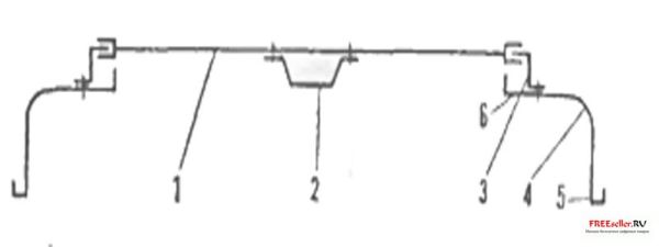 I - люк, 2 - ручка, 3 - направляющая, 4 - крыша, 5, 6 - желоба.