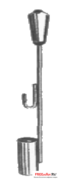 Самый процесс окуривания чрезвычайно прост Применяют особый инструмент, называемый окуривателем (рис. 1). На крючок его надевают серный фитиль. Он поджигается и горящим вводится в бочку или бутыль через отверстие, затыкаемое сразу же рукояткой окуривателя. Она занимает место втулки или пробки. Чтобы капли расплавленной серы не падали на дно сосуда, к нижнему концу инструмента приделана воронка нлн цилиндр из железа. После такой обработки порода оказывается совершенно готовой для наполнения ее ягодным соком или вином.