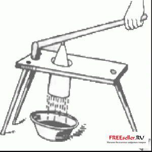 Поэтому, если ставить цель ежегодно приготовлять ягодные вина, нужно запастись хотя бы самым простым и дешевым ручным прессом (см. рис.1). Не только дно, но вообще вся нижняя часть его резервуара состоит из металлического сита, имеющего многочисленные маленькие отверстия для истечения выдавливаемого сока. Если есть возможность, гораздо практичнее обзавестись более солидным винтовым прессом.