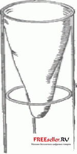 Замутненную часть содержимого приходится фильтровать. Для фильтрации употребляются фланелевые мешки с обращенным внутрь ворсом. Такой мешок из фланели укрепляется на металлической треноге (рис. 5), под которую ставят сосуд для профильтрованного вина.