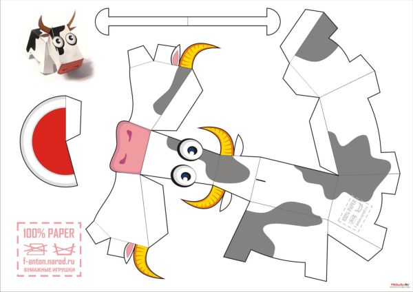 Бумажная модель коровы - скачай, распечатай, вырежи и склей.