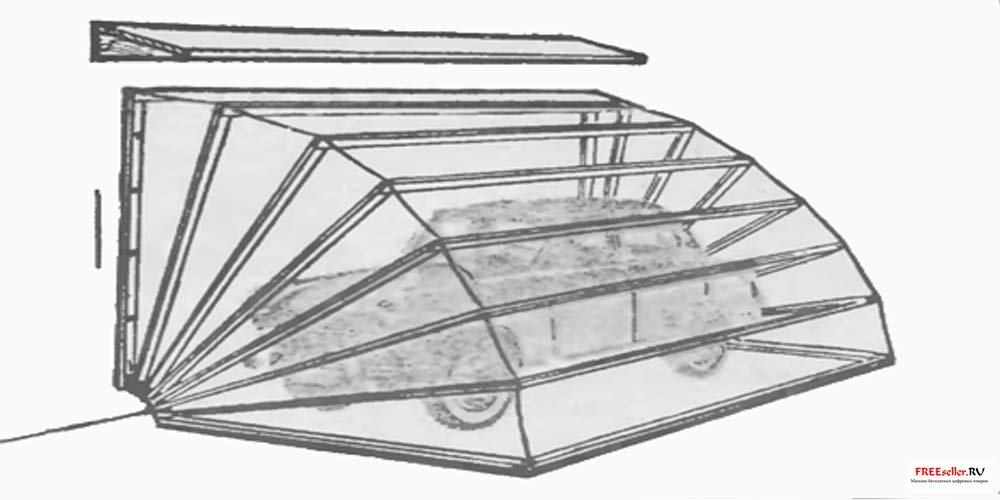 Рис. 1 . Складная конструкция гаража прикрепленного к стене.