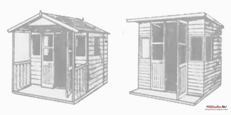 Конструкция летнего домика типа бунгало. Домик невелик, но, заглянув в помещенные рядом его описание и схемы, вы убедитесь, что в нем есть все необходимое. Возможны и другие м другие указанные в статье варианты.