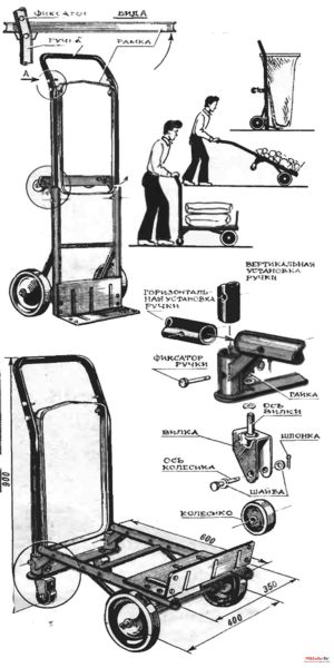 Рис.1 Конструкция и основные узлы самодельной трансформируемой грузовой тележки.