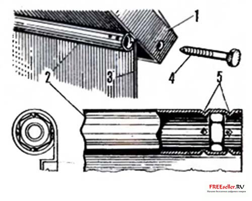 Места соединения всех панелей оклеены резиновыми (или парусиновыми) лентами, герметизирующими помещение от сквозняков. Верхние кромки боковых стенок свернуты в трубки, в концы которых заделаны гайки М18. К ним четырьмя болтами крепится крыша.