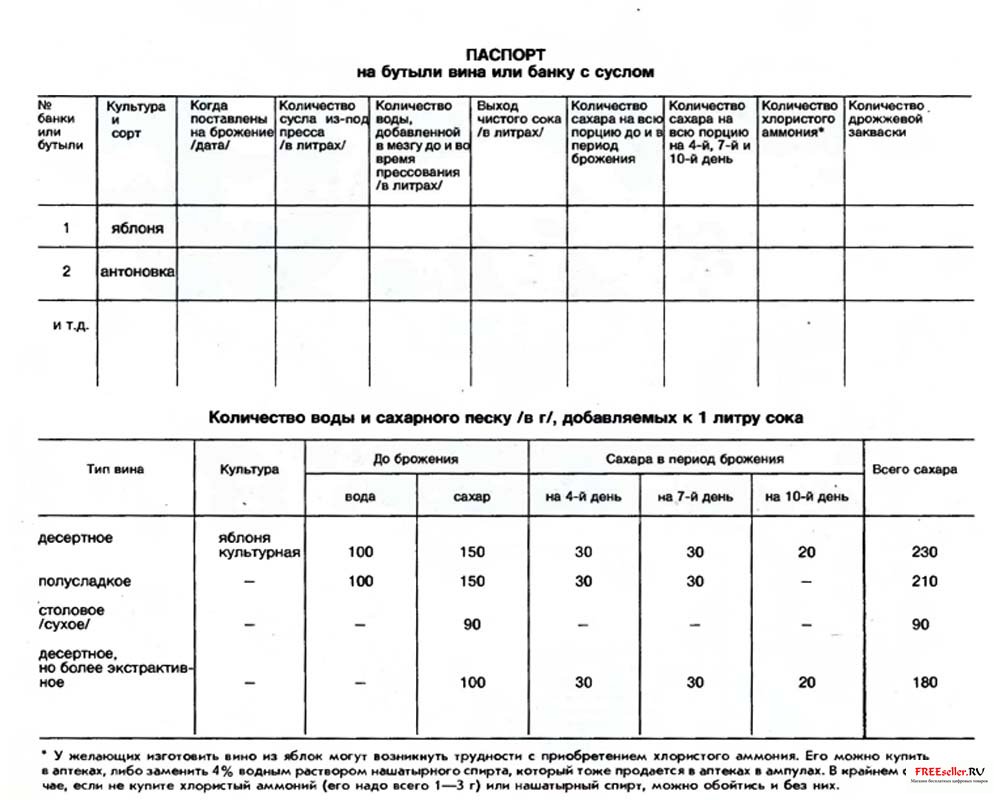 Настоятельно рекомендую составлять таблицу на каждую поставленную на брожение бутыль или банку с суслом, помня о несовершенстве нашей памяти и желании получить хороший продукт.