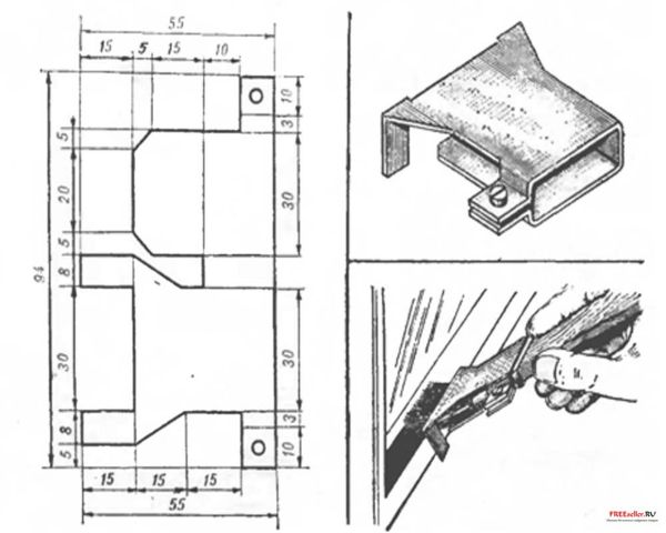 Простое нехитрое приспособление, которое поможет покрасить оконные рамы, не пачкая стекло можно изготовить, вырезав элементарный хомутик, согнутый из алюминиевого листа толщиной 1,5 мм
