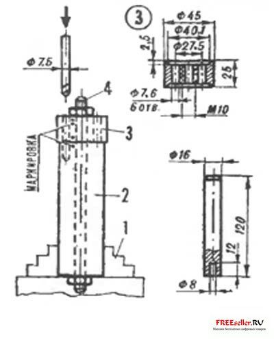 1 - зажим, 2 - дистанционная трубка, 3 - кондуктор, 4 - шпилька.