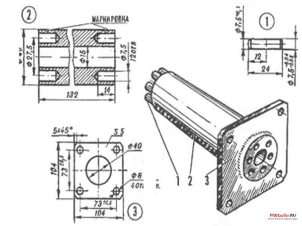 1- штифт, 2 - дистанционная трубка, 3 - планка.