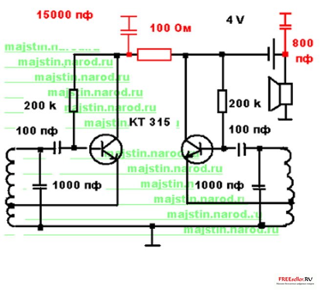 Берем самую простую схему. Схема не критична к питанию, количеству витков и номиналам деталей. Условие одно: левая и правая часть должны быть одинаковыми.