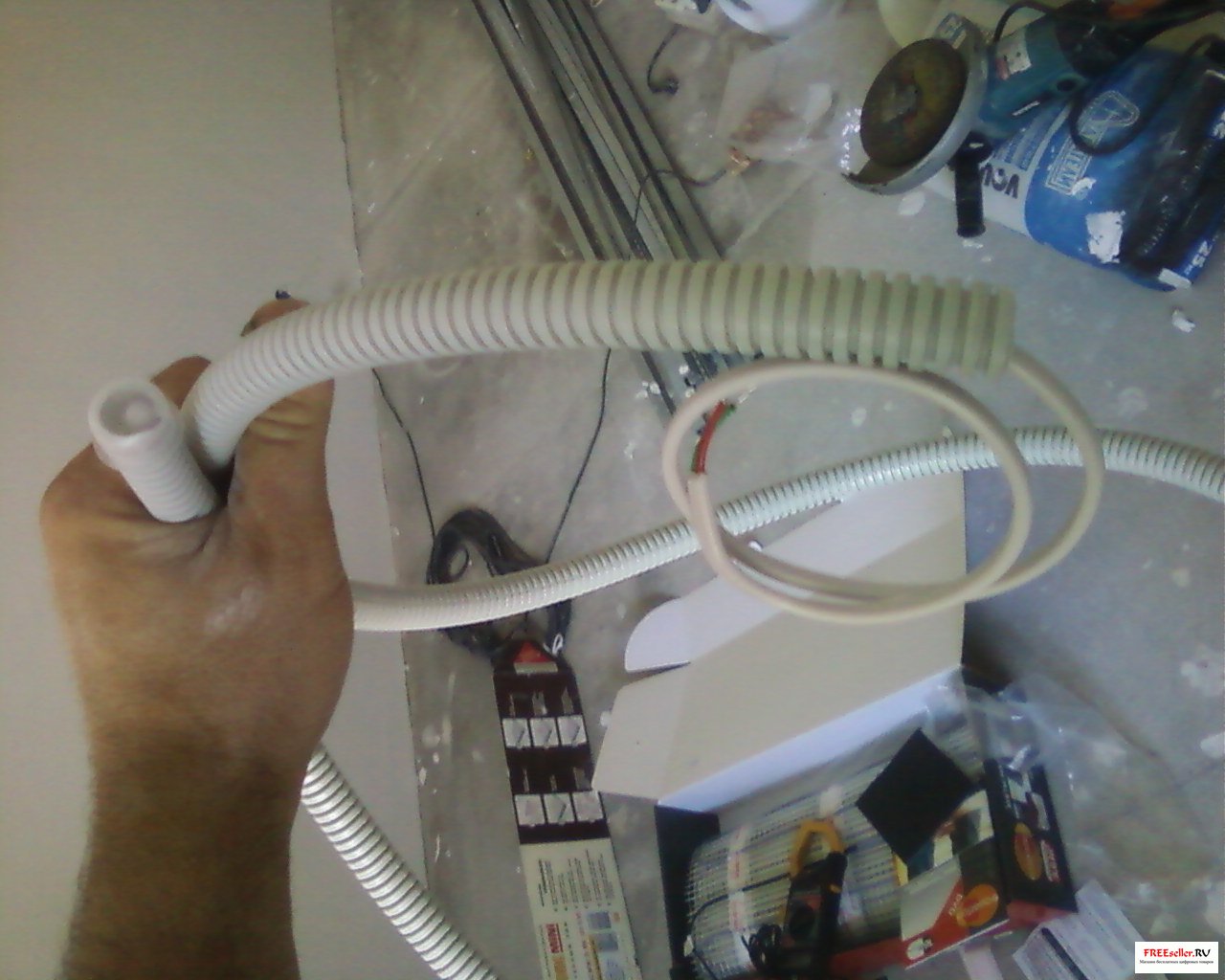 И фиксируем гофру плиточным клеем смешанным с гипсом.