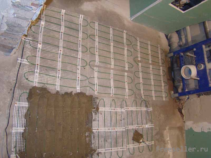 Решил добавить еще несколько фоток монтажа электрического теплого пола в ванной комнате.