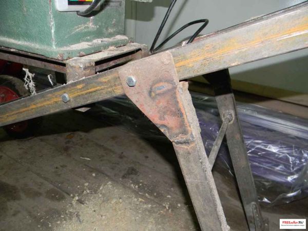 К нему же привариваются колеса и крепятся болтами еще 3 элемента - это откидная ножка, крепление под основание станка и стойка для нее.
