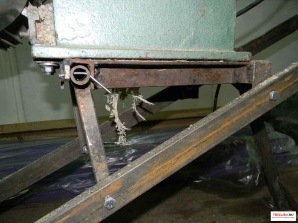 Основание под станок имеет такие же размеры, как подошва станка. Сварен он из уголков 40*40. На нем имеются 2 ушка, служащие петлями вращения.