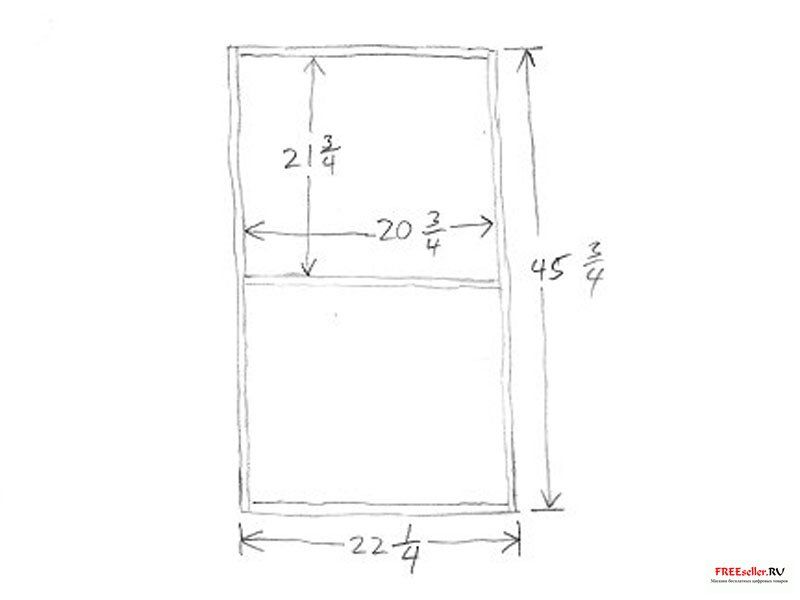 Все размеры указаны в дюймах . Бортики толщиной 3/4 дюйма идут вокруг всего листа фанеры. Такой же бортик идет по центру и делит батарею на две части.