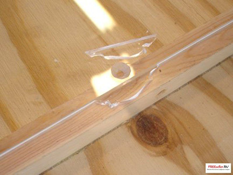 На фото два листа оргстекла соединенные на центральной перегородке. Сверлим отверстия вокруг кромки, чтобы посадить оргстекло на шурупы. Будьте осторожны, сверля отверстия возле кромки оргстекла.