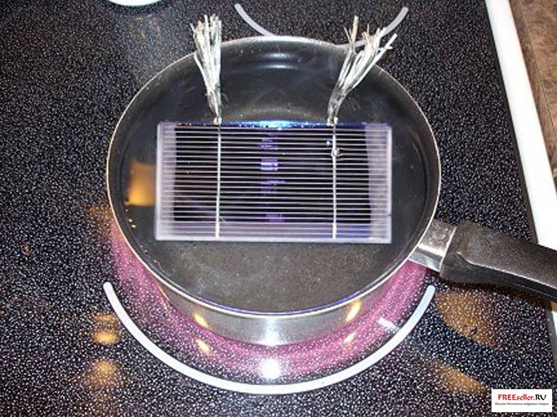 1) Купаем солнечные элементы в горячей воде, чтобы растопить воск и отделить элементы друг от друга. Не дайте воде закипеть, иначе пузырьки пара будут сильно бить элементы один о другой. Кипящая вода также может быть слишком горячей, в элементах могут быть нарушены электрические контакты.