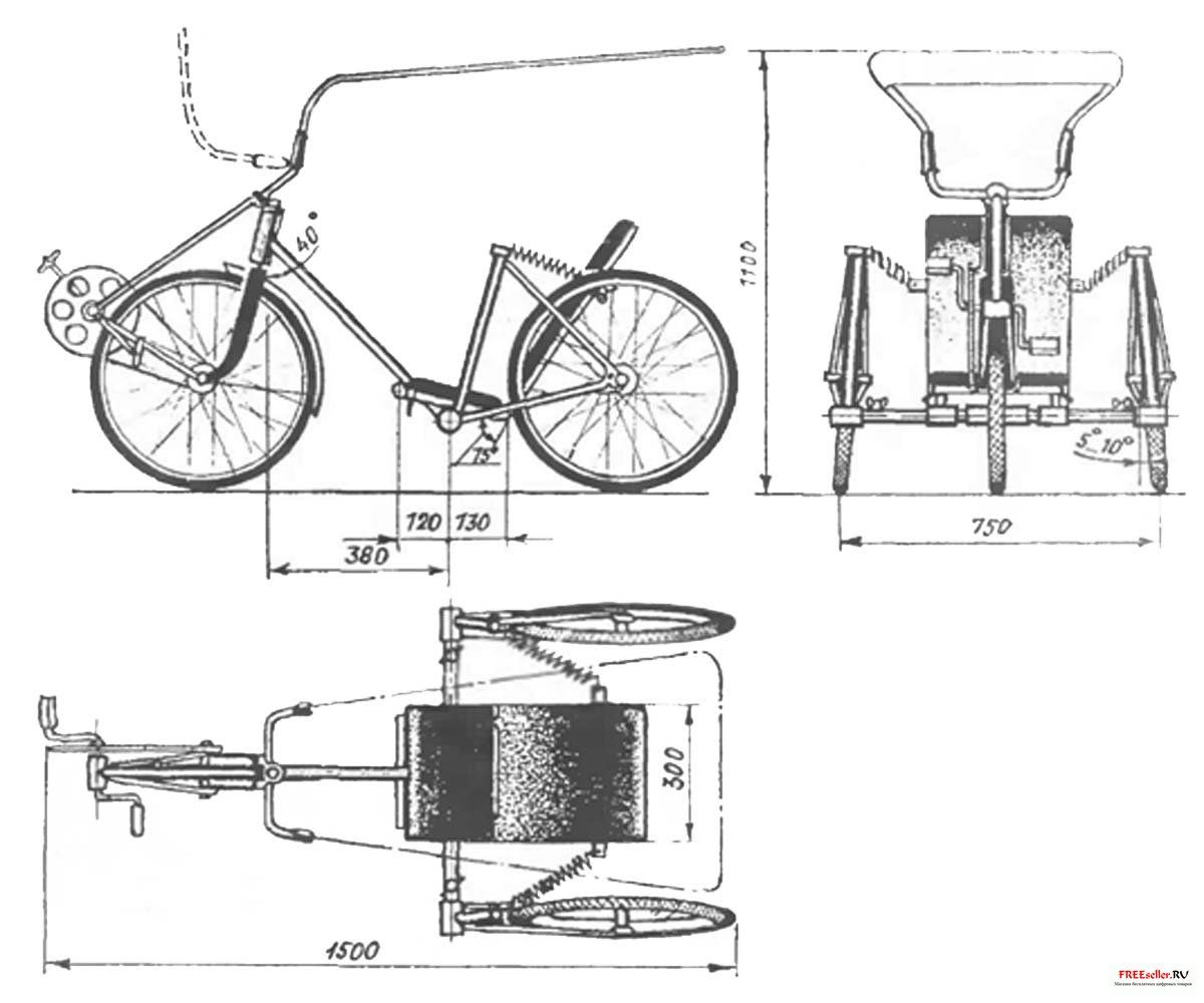 Конструкция самодельного веломобиля, который Вы можете сделать своими руками из старых велосипедов типа "Школьник".